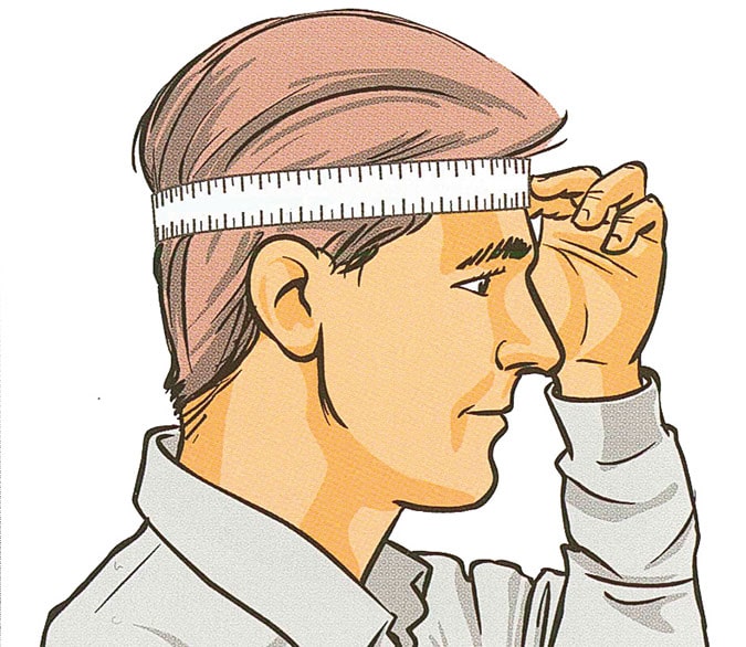 Brug vejledende måleskema nedenfor for at se hvilken hjelmstørrelse du skal bruge.
